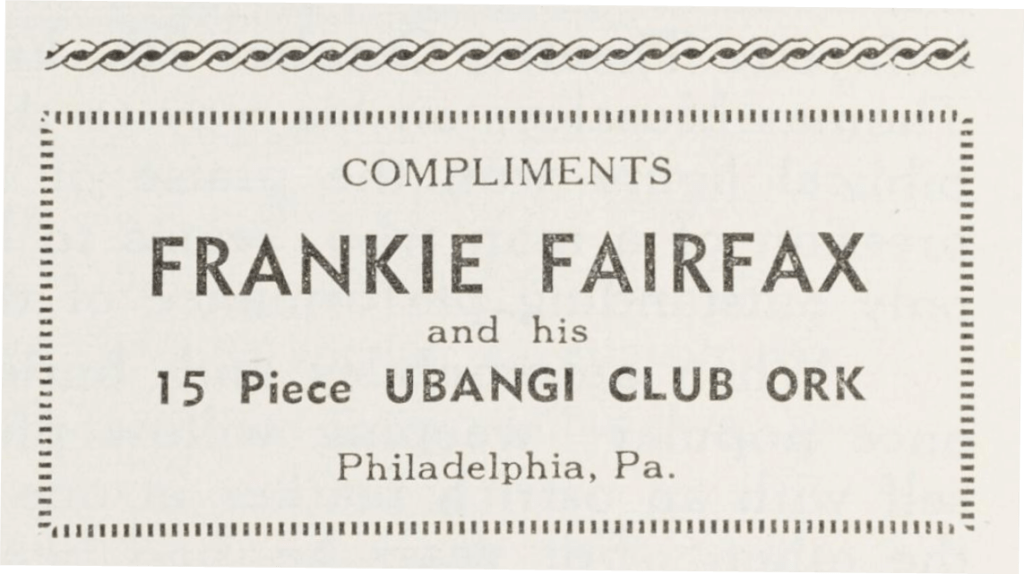 The Ubangi Klub orchestra was led by Black musicians Union Local 274 organizer Frank Thurman “Frankie” Fairfax.