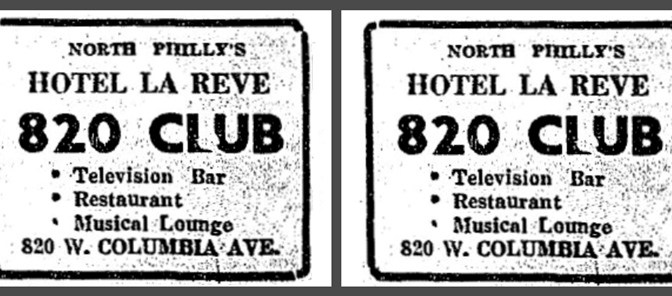 Opened in 1948, the 820 Club was located on the first floor of North Philly’s Hotel La Reve. The Black-owned hotel was listed in the Green Book travel guide.