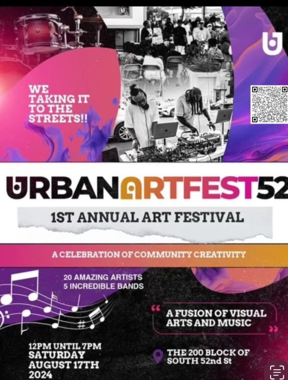 The African Cultural Art Forum, Urban Art Gallery, Family Survival and 52nd St Cultural Art Corridor Coalition will present Community Art Day x Urban Art Fest 52 on Saturday, August 17, 2024. The event will be held on the five-block stretch of 52nd Street from Walnut St. to Spruce St. that was the heart of the Strip back in the day.