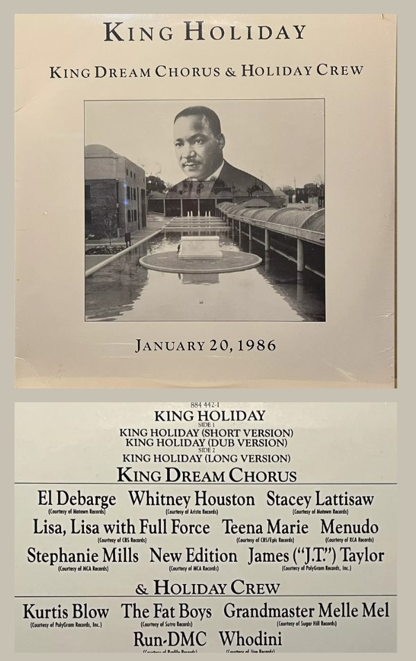 In 1986, an all-star collective of artists, including El DeBarge, Grandmaster Melle Mel, Kurtis Blow, Run–DMC, Whitney Houston, Teena Marie, Stephanie Mills, James “JT” Taylor and Whodini, released a tribute song, “King Holiday,” celebrating Dr. King and the new holiday.