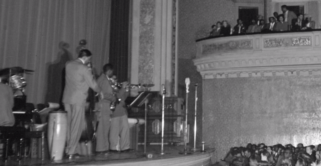 On June 5, 1945, the Dizzy Gillespie Quartet, featuring Charlie Parker, was in the house. Seated in the next-to-last row were Benny Golson and John Coltrane.