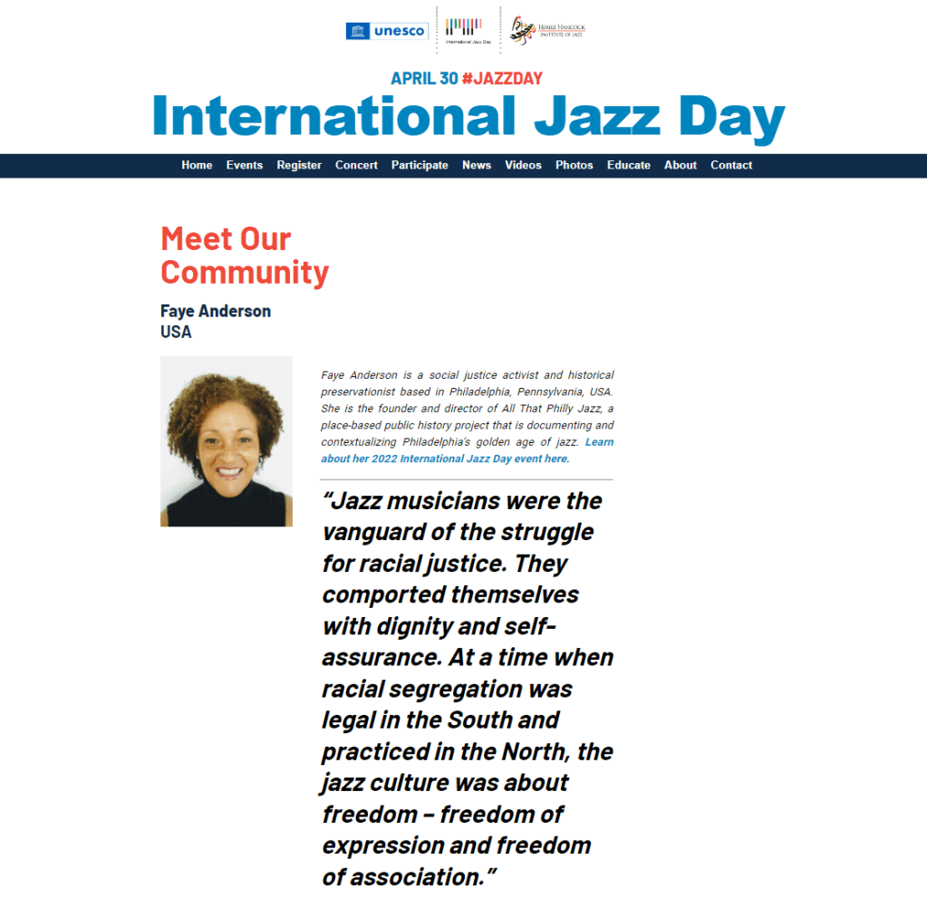 All That Philly Jazz director Faye Anderson is one of 19 American community partners.